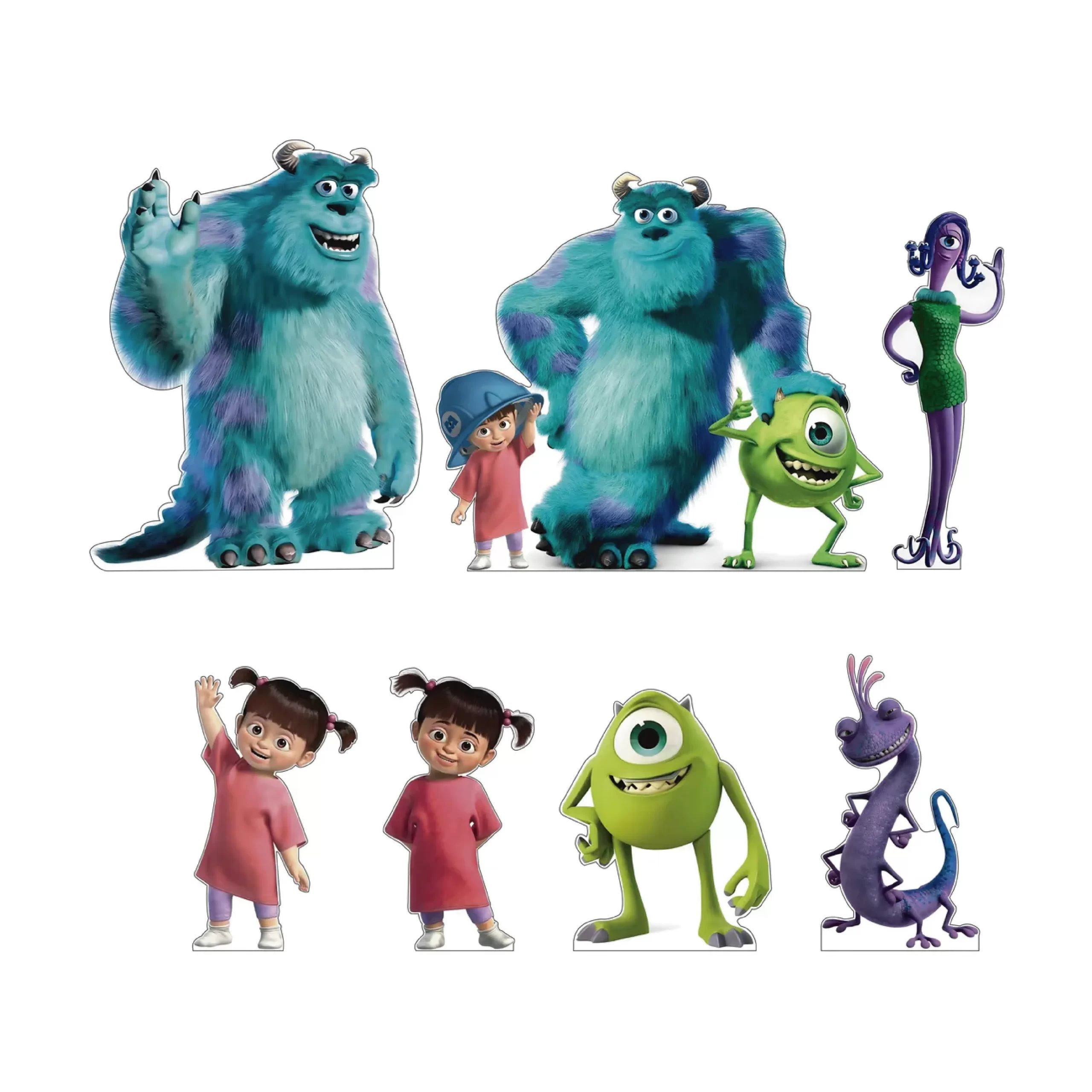Haz de tus celebraciones momentos inolvidables con figuras decorativas de Monsters Inc. Transforma los espacios en escenarios fantásticos llenos de mágia y color con tus personajes favoritos. Las piezas plásticas de Coroplast impresas en HD con tintas UV de la más alta calidad, garantizan durabilidad y resistencia para su uso en fiestas, actividades recreativas, decoración de habitaciones y más.